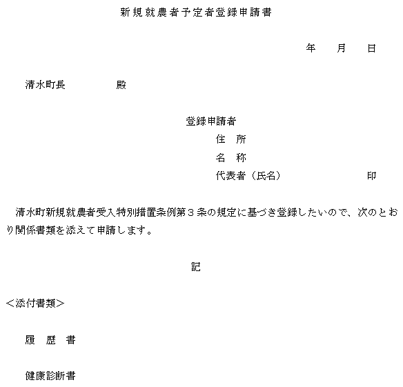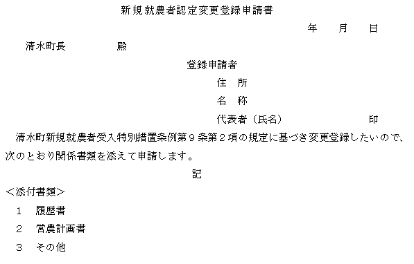別記第1号様式による認定登録申請書を、十勝清水町農業協同組合を経由し、提出しなければならない。
