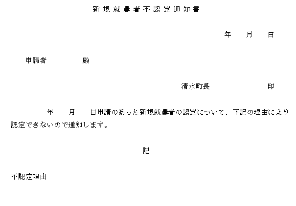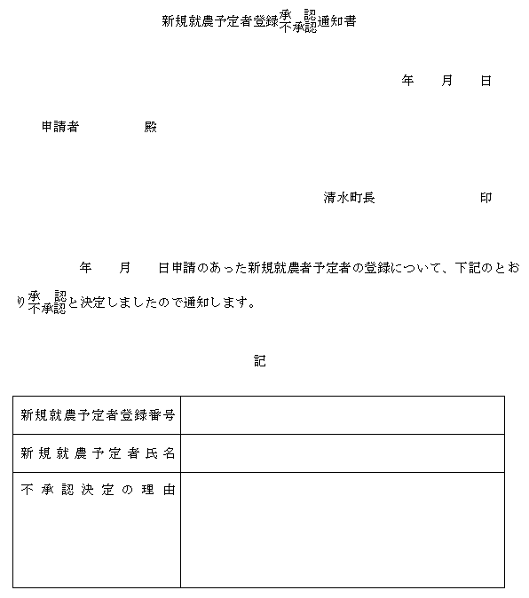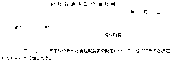 別記第2号様式により、十勝清水町農業協同組合を経由し、申請者に通知するものとする。